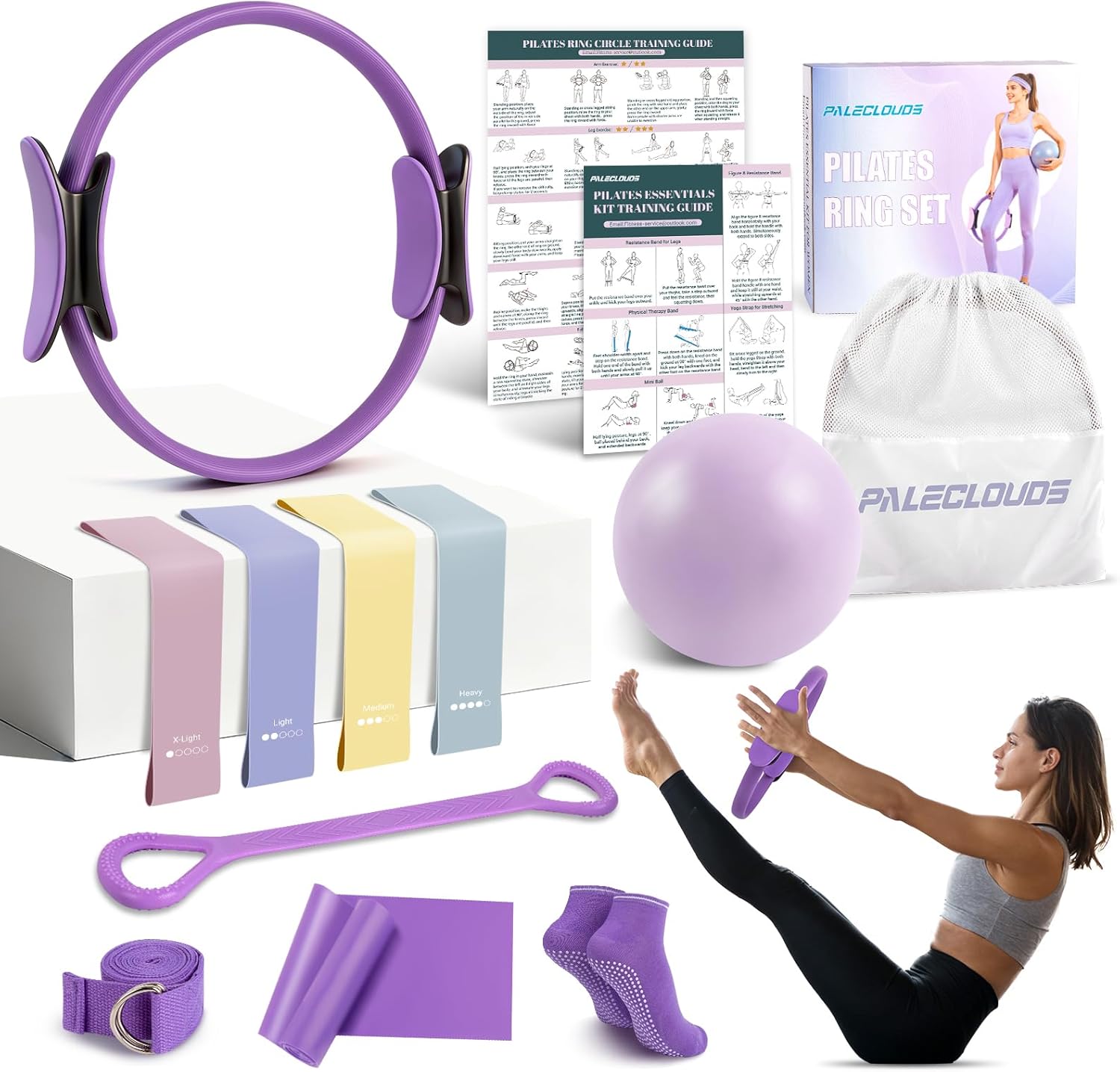 Halloscume 24 Pcs Home Pilates Essentials Kit for Women, Pil...