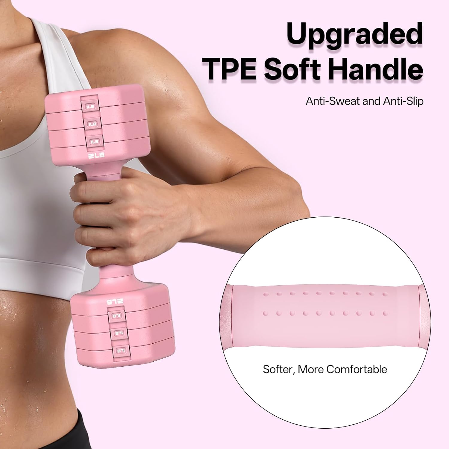 JOROTO 4-in-1 Adjustable Dumbbell Set of 2, 16LBS/22LBS Hand Weights for Women, Men, Upgraded TPE Soft Handle, 1s-Adjust Dual-Stable Dumbbell Set for Women Home Gym Exercise Training